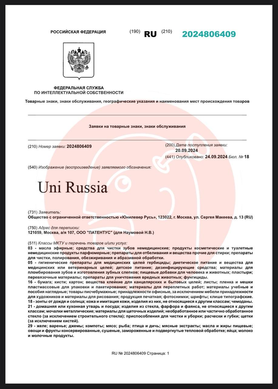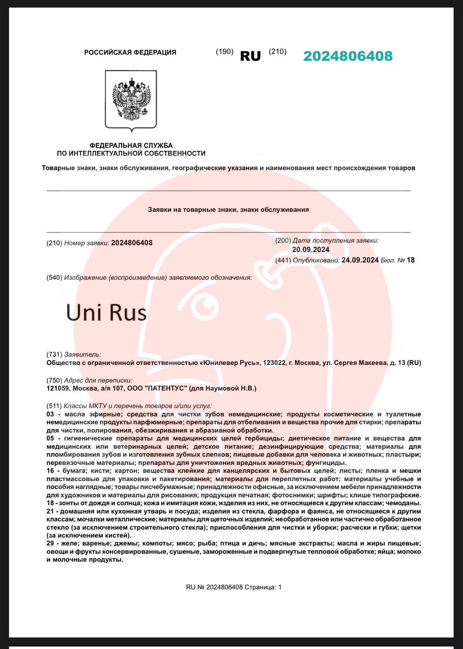 🤓 Юнилевер продолжает робко пытаться регистрировать свой незаявленный внутрироссийский ребрендинг.