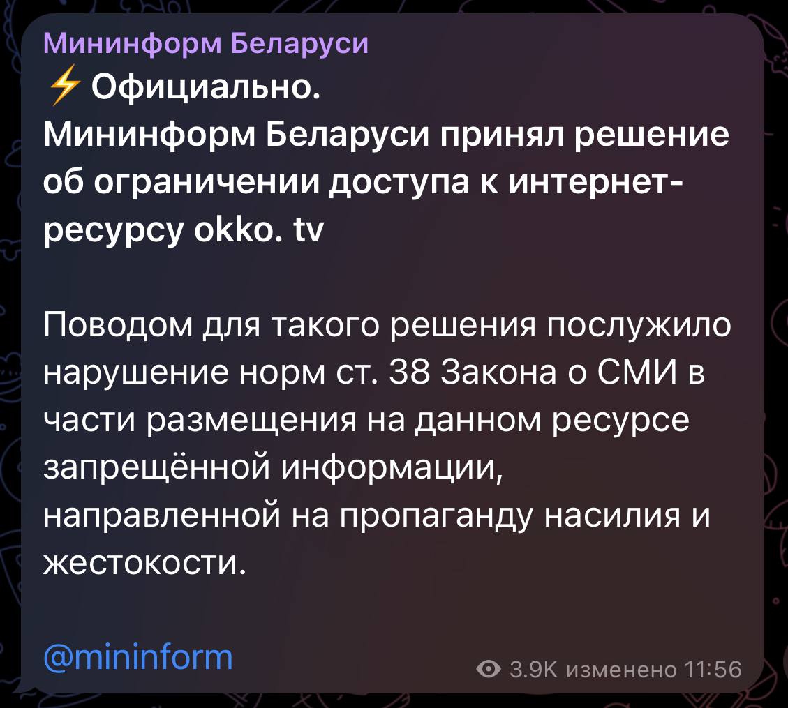 🤓 Внезапно Окко (участник экосистемы Сбера) было заблокировано Мининформом Беларуси.