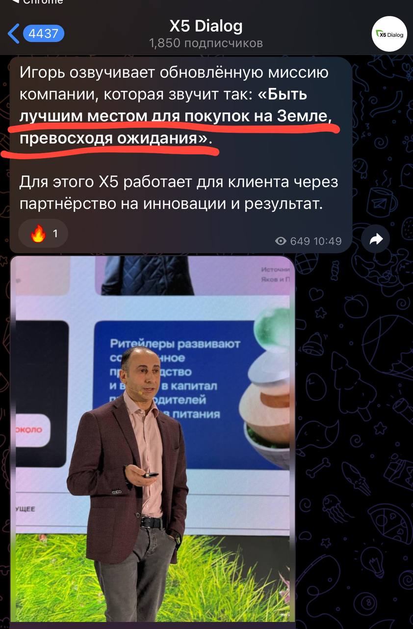 🤓 Любопытный факт — в новой миссии Х5 есть только определение себя, как «места», читай «точки в пространстве». Но нет упоминаний: продуктов, сервисов, персонала, покупателей...