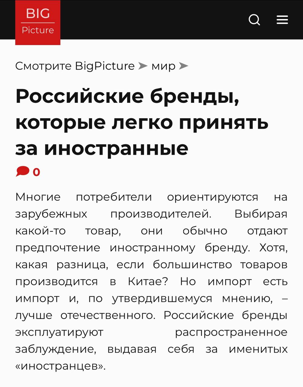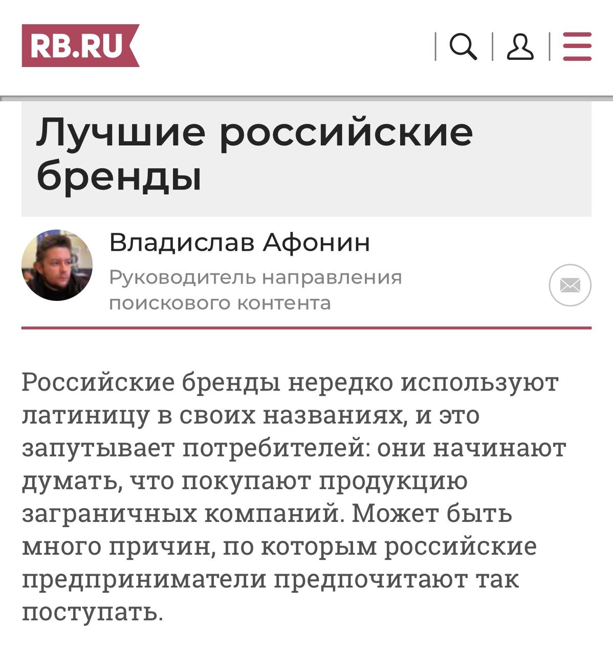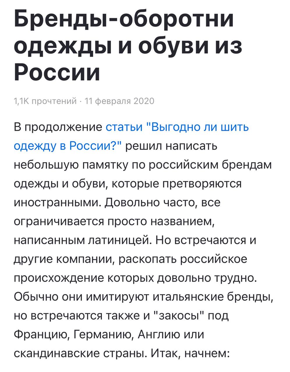 🤓 Попала на глаза свежая статья на РБ с названием «Лучшие российские бренды». Любопытно, но это текст с перечислением псевдо иностранных марк, который уже 15 лет гуляет по сети, переписанный своими словами.
