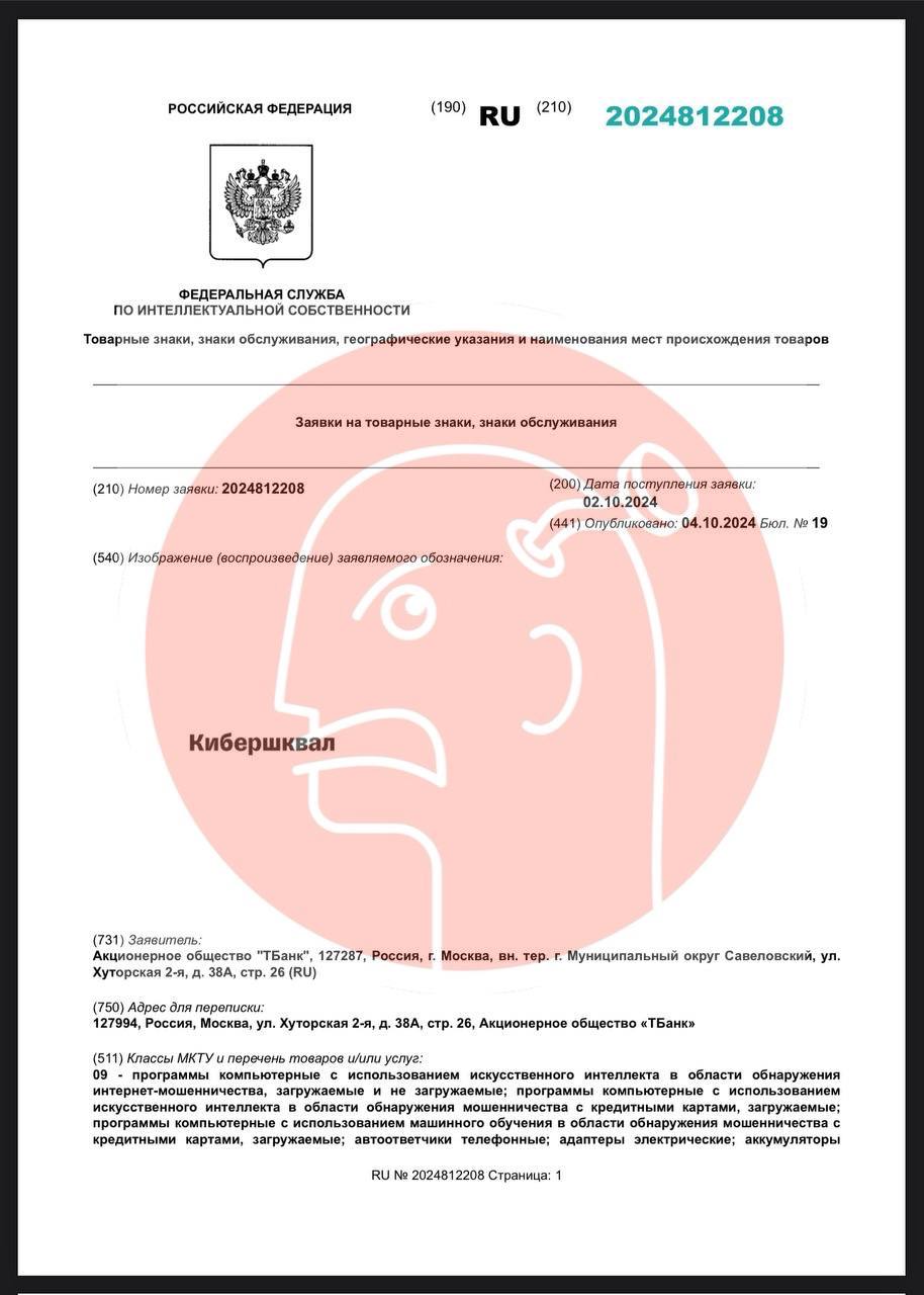🤓 Тинькофф (Т-банк) замутил Кибершквал. Первый товарный не-Т знак за год, кажется…