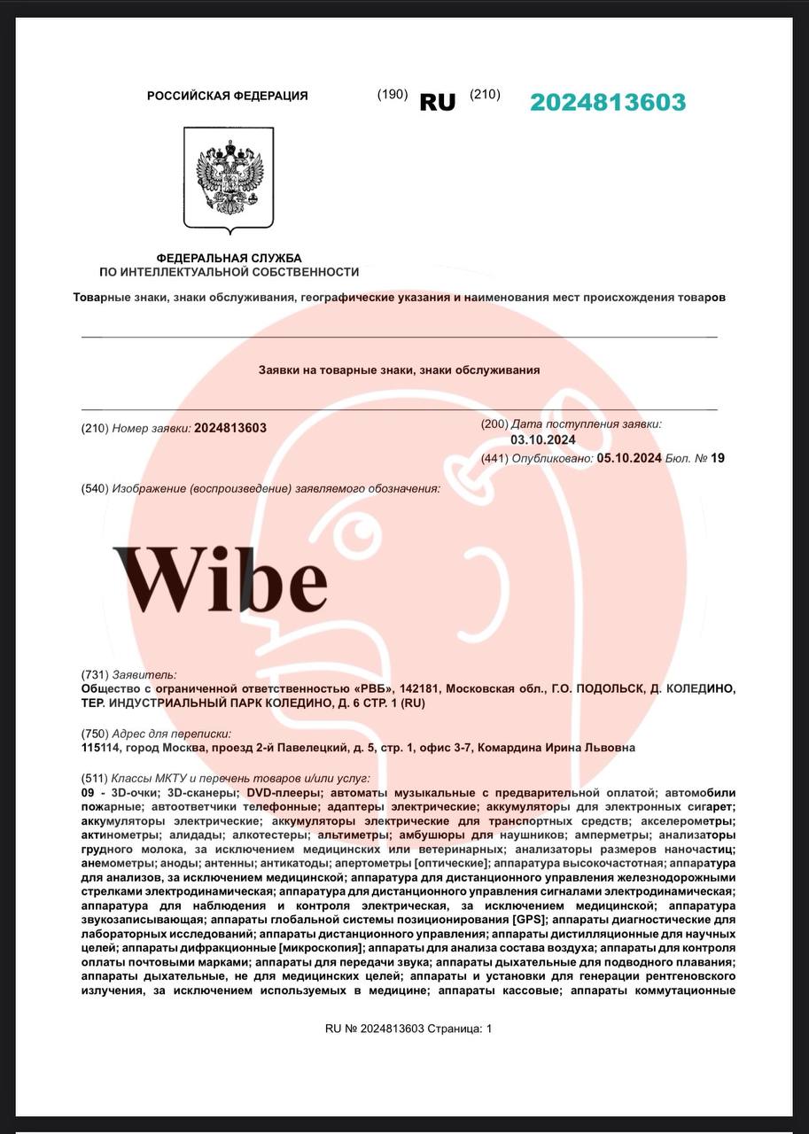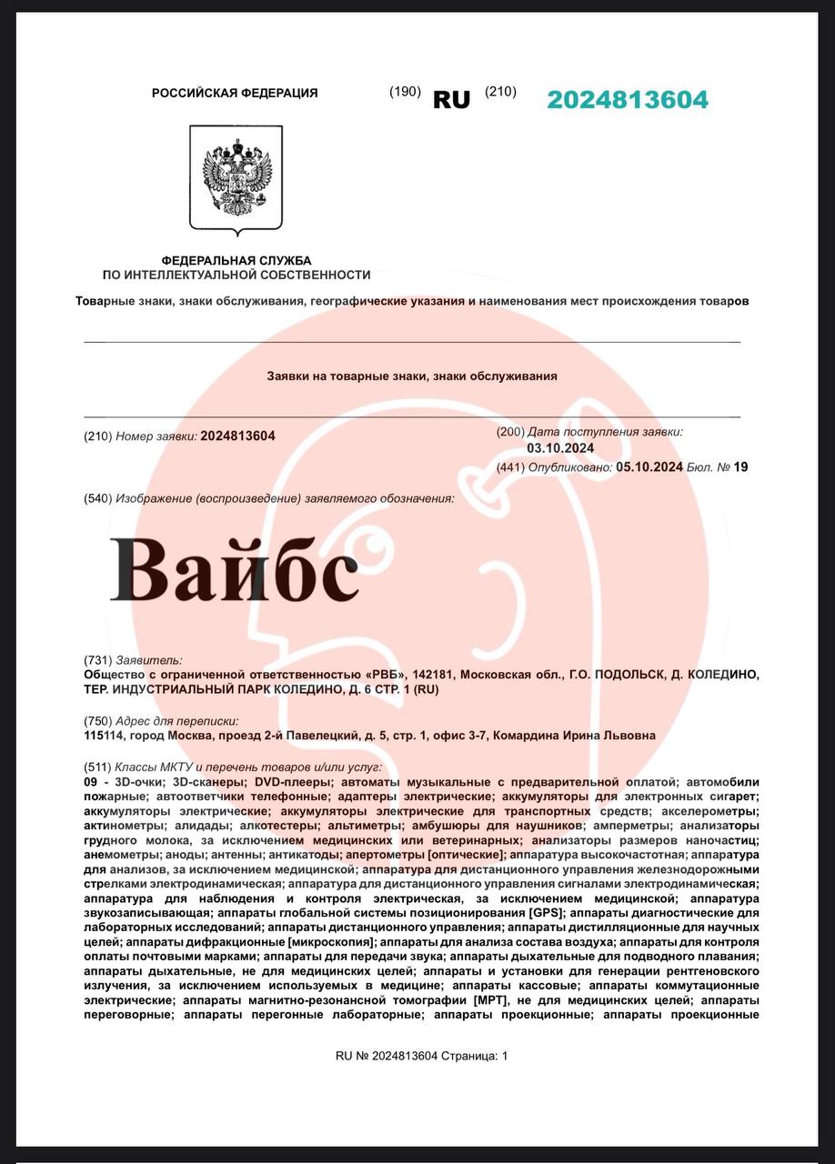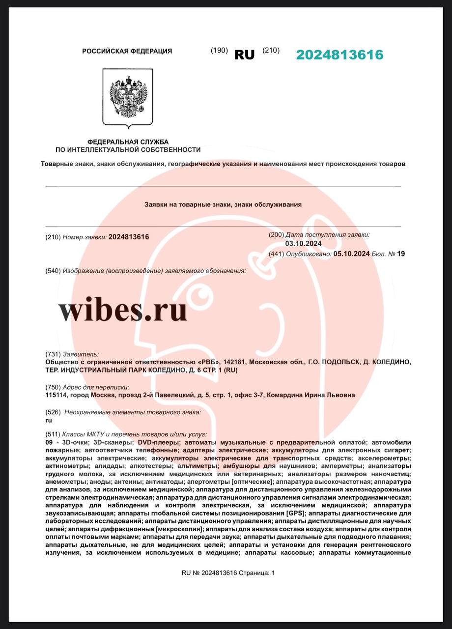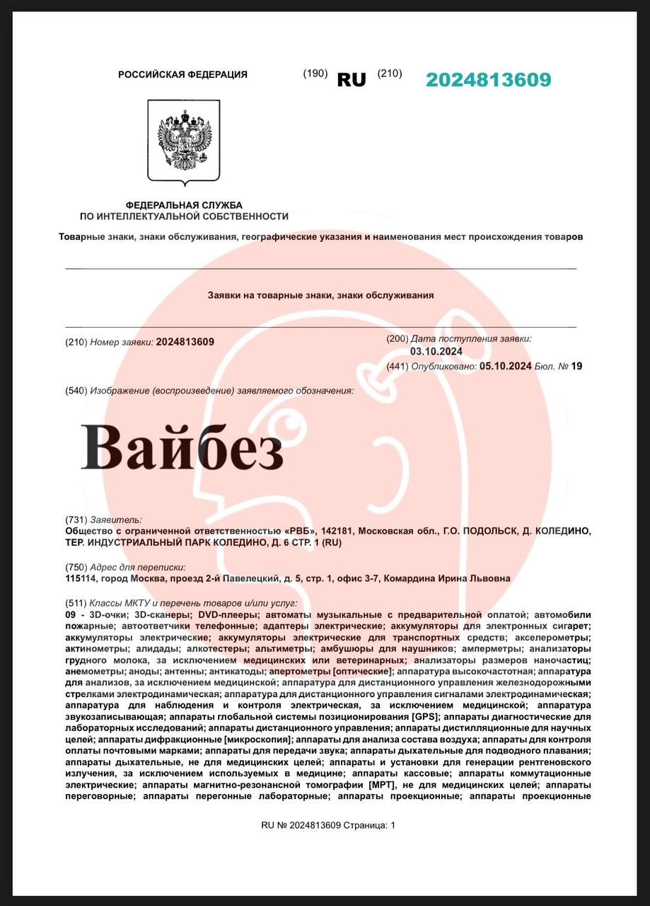 Целую пачку «Вайбзов» направила на регистрацию а патентное ведомство РВБ (объединенная компания RUSS и ВБ).
