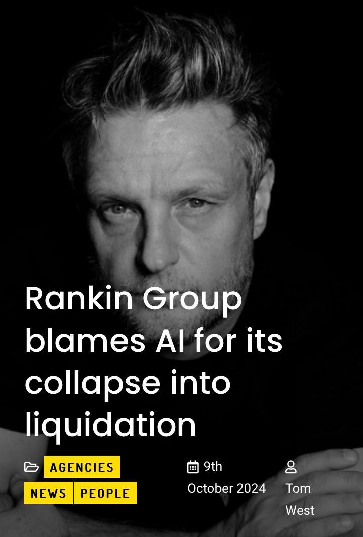 Однако Рэнкин намерен продолжить свою прибыльную карьеру фотографа и продюсерский бизнес. По словам самого Рэнкина, агентство преуспевало в течение первых трех лет, но впоследствии пострадало из-за целого ряда факторов, включая сокращение бюджетов по всей отрасли после covid и потерю работы для искусственного интеллекта.