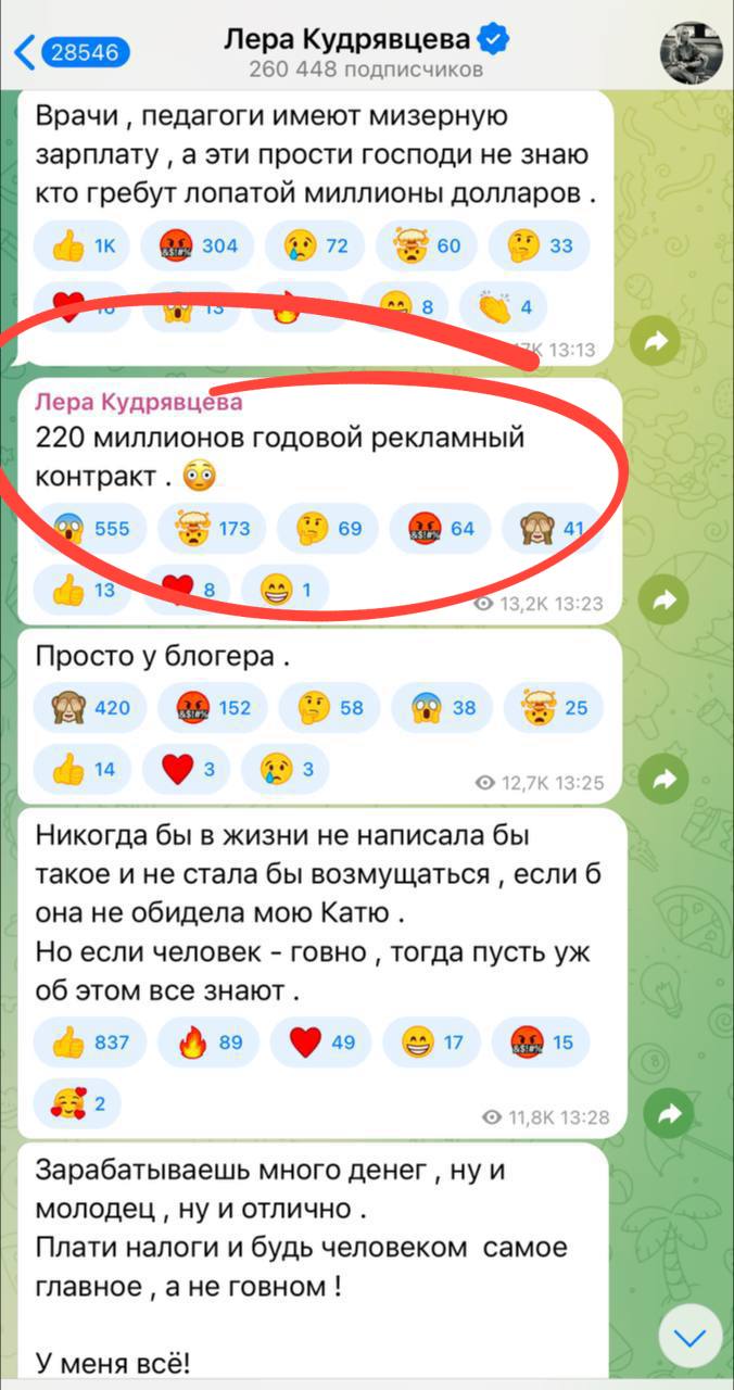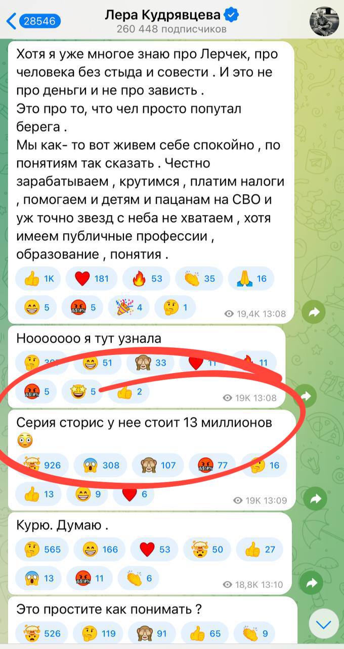 😂 Лера Кудрявцева узнала стоимость размещения у Лерчек и ее бомбануло. Понимаем и поддерживаем, все эти блогеры и инфоцыгане живут в какой-то параллельной реальности с обычными людьми, пусть даже телезвездами.