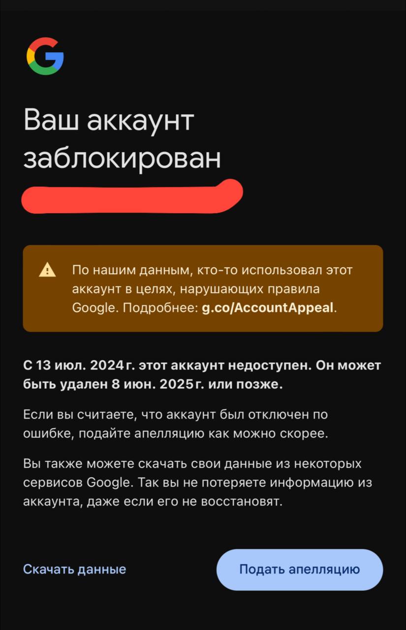 🤔 Есть вероятность, что Гугль решил отключать российские эккаунты вот таким образом…