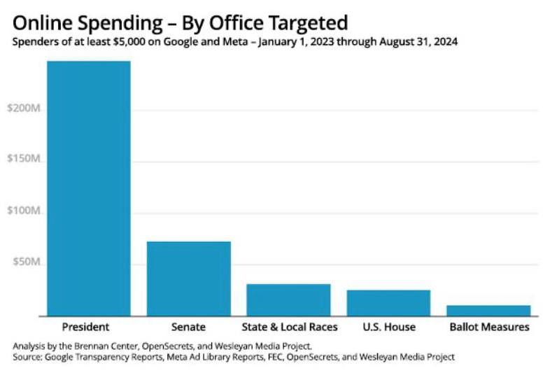 🤓 А вот вам предвыборный факт. Политические рекламодатели в США потратили 619 млн $ на Google и Meta за 1,5 года. Демократы потратили в три раза больше, чем республиканцы. Однако некоторые республиканские расходы, возможно, были на платформах, не включенных в исследование. Структура расходов — выше.