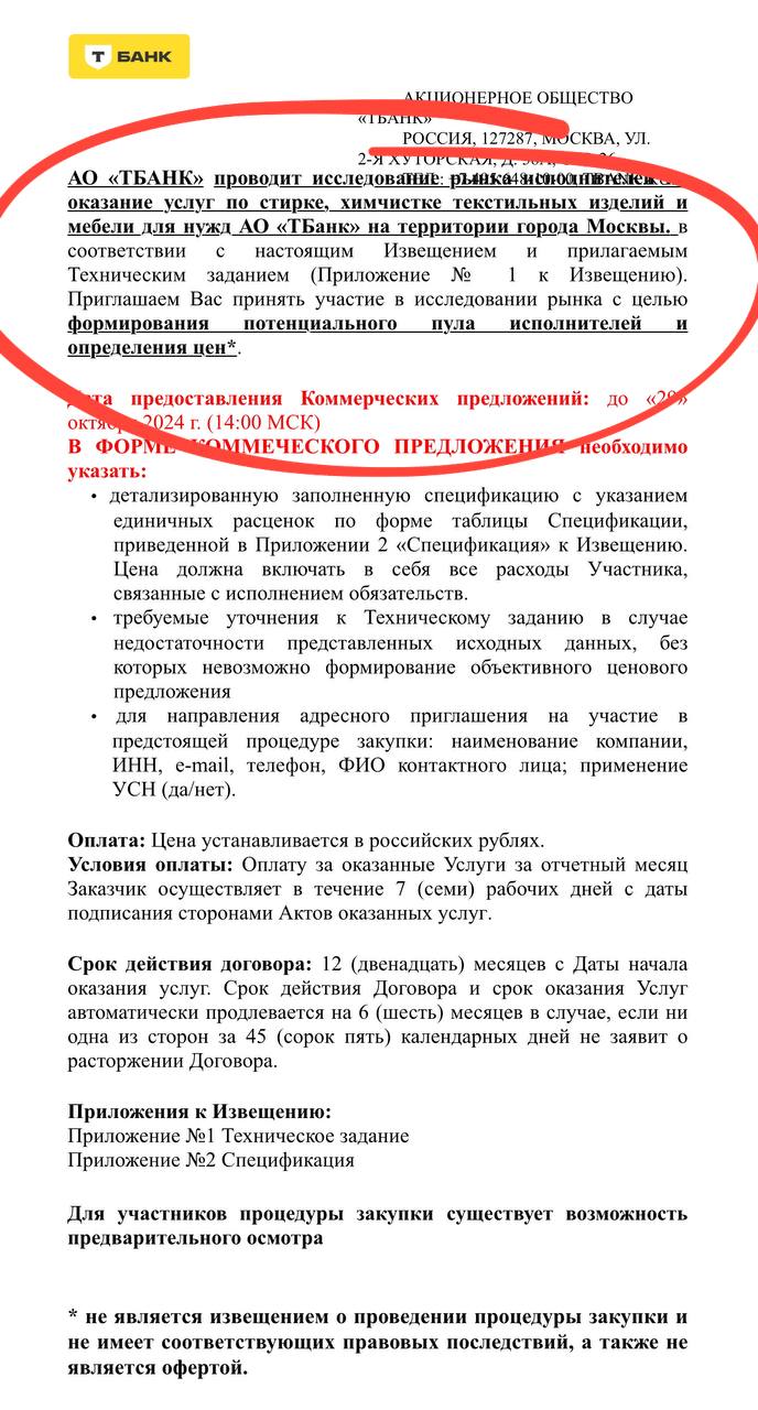 😂 Т—банк тендерит услуги, стыдно сказать, прачечных. Что решили отмывать?