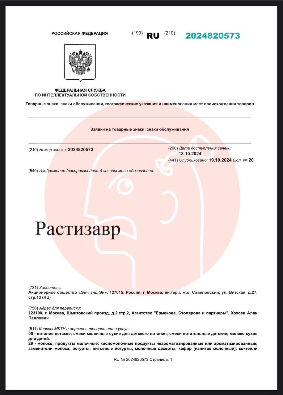 Преемник Данон регистрирует имя продолжателя дела Растишки — Растизавра (… Эдуардовича, хочется добавить).
