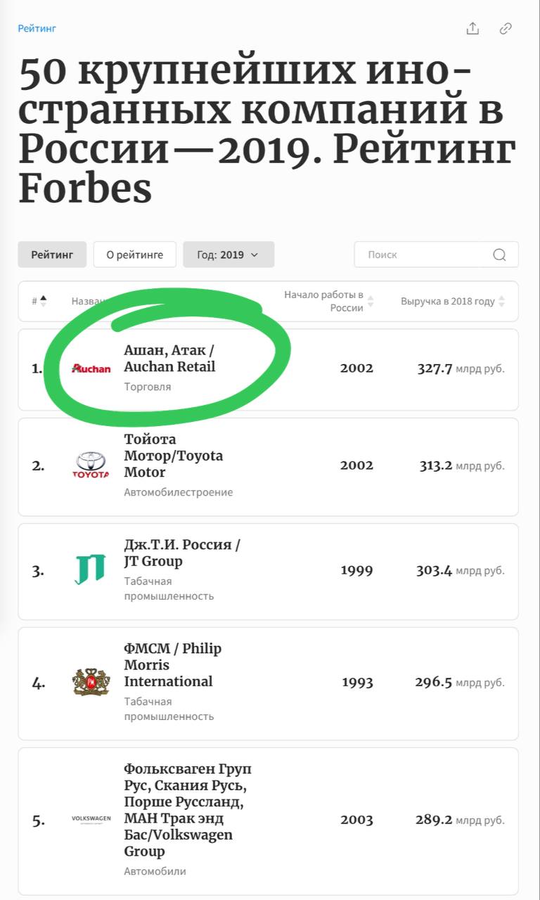 🤓 Лидер рейтинга крупнейших иностранных компаний в РФ 2019 (последний репрезентативный год для бизнеса) от Форбс — покидает нашу страну.