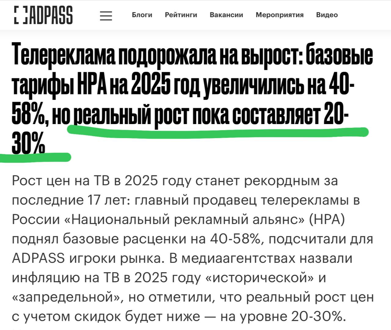 🤓 Второй день все вокруг обсуждают новую считалку НРА и инфляцию в нее заложенную. Вот обзорная статья на Адпассе, в которой дано достаточно взвешенное мнение (если читать ее по буквам).