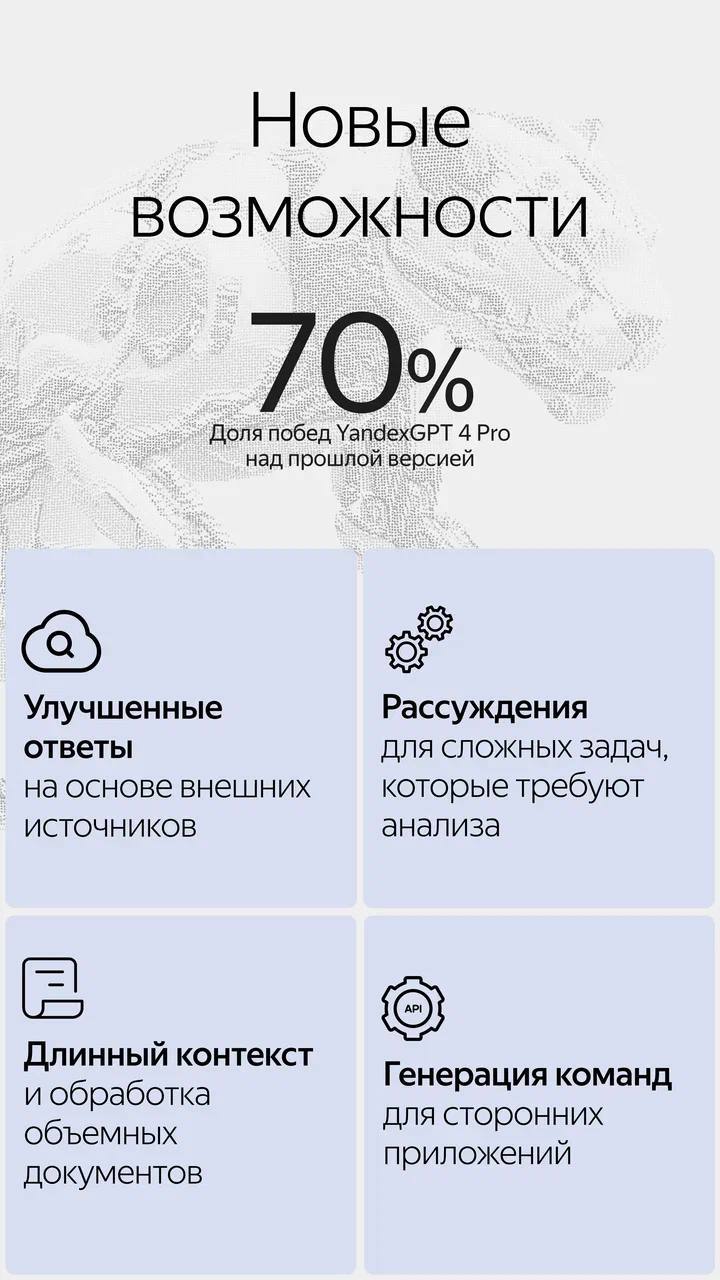 Так, например, Яндекс запускает новое поколение языковых моделей YandexGPT 4, и они научились рассуждать и обрабатывать в четыре раза больше текста.