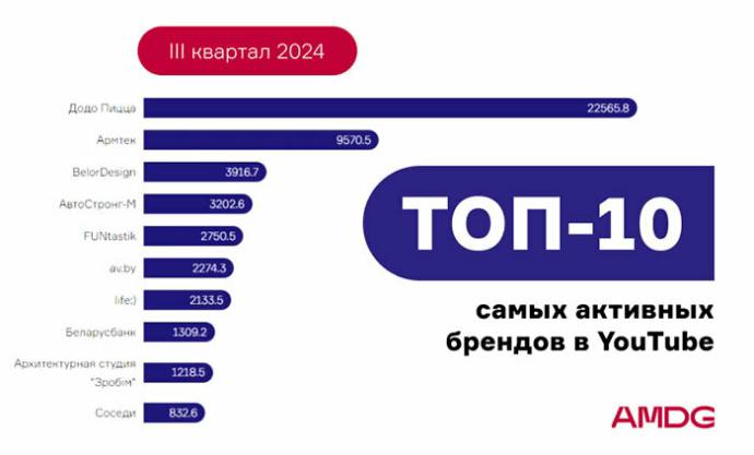 🤓 Немного экзотики. Самые активные бренды белорусского Ютьюба от АМДГ. Вы удивитесь, но на первом месте — Додо.