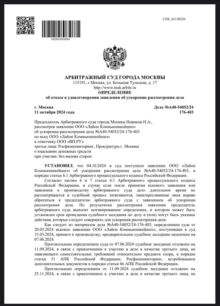 🤓 А вот что мы пропустили. Родная речь обратилась с заявлением в суд об ускорении дела (знаменитый суд с Айконтекстом).