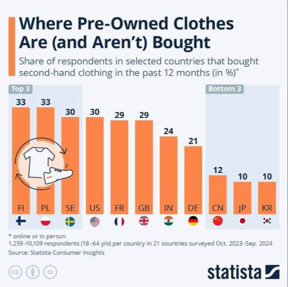 🤓 Между тем, в Финляндии, Польше и Швеции почти треть населения покупает одежду в секонд-хендах. И это не (только) потому, что они бедные.