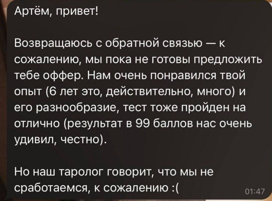 🤓 История о том, как москвичу отказали в приеме на работу на основании таро-расклада, густо полилась по каналам.