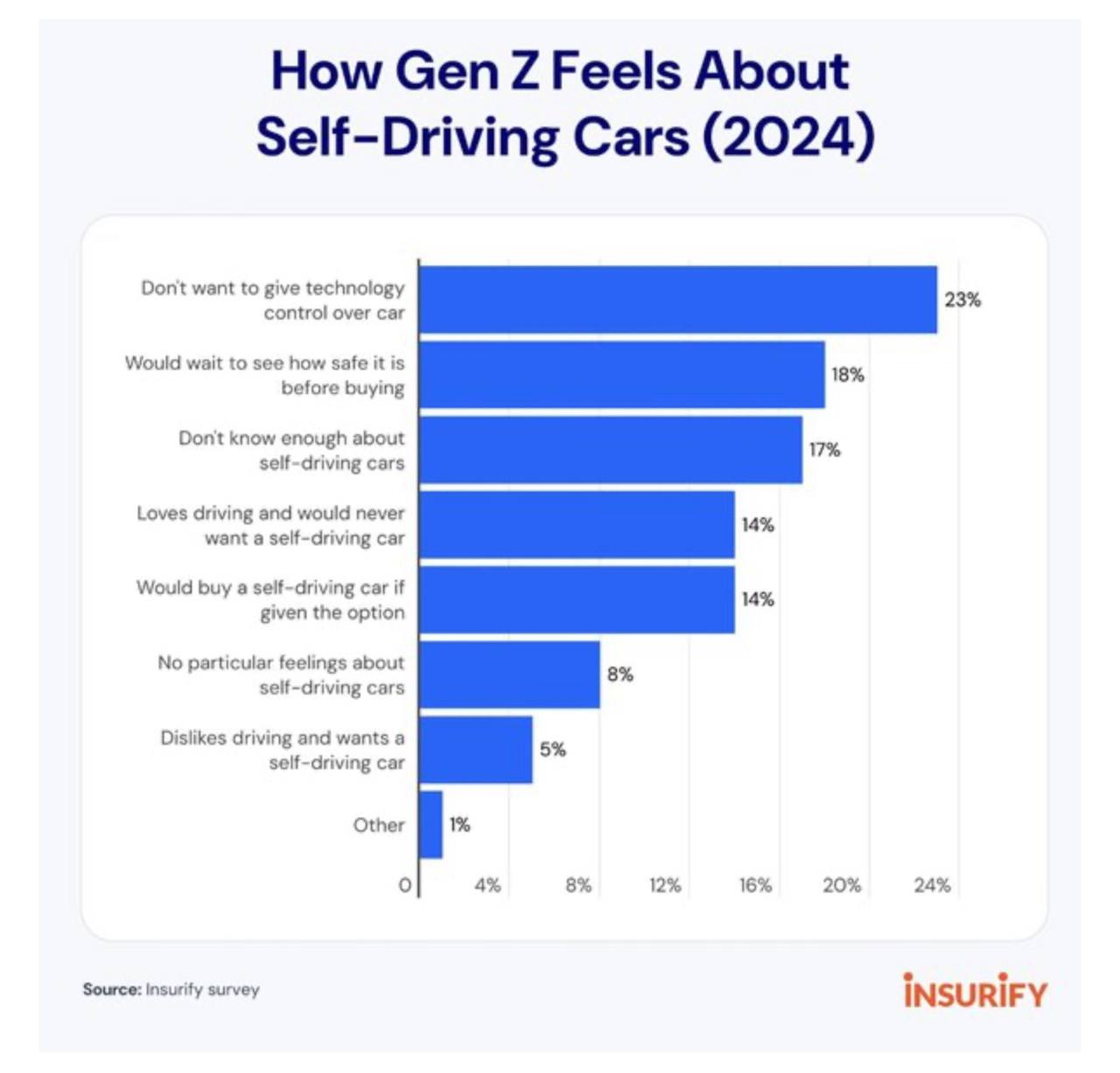 🤓 Согласно новому исследованию, американские потребители поколения Z не очень любят водить машину, и не заинтересованы в самоуправляемых автомобилях
