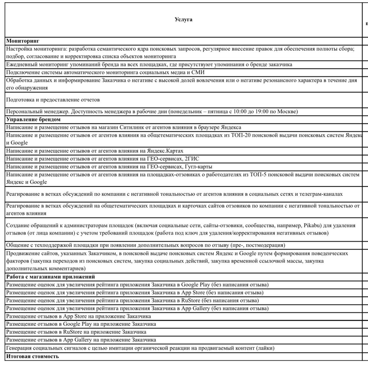 🤔Вот, например, Ситилинк тендерит закупку хвалебных отзывов о себе на всех площадках интернета. Цифры впечатляют: от 3000 (общих в Яндексе) до 20 (на Гугль-картах) в месяц.