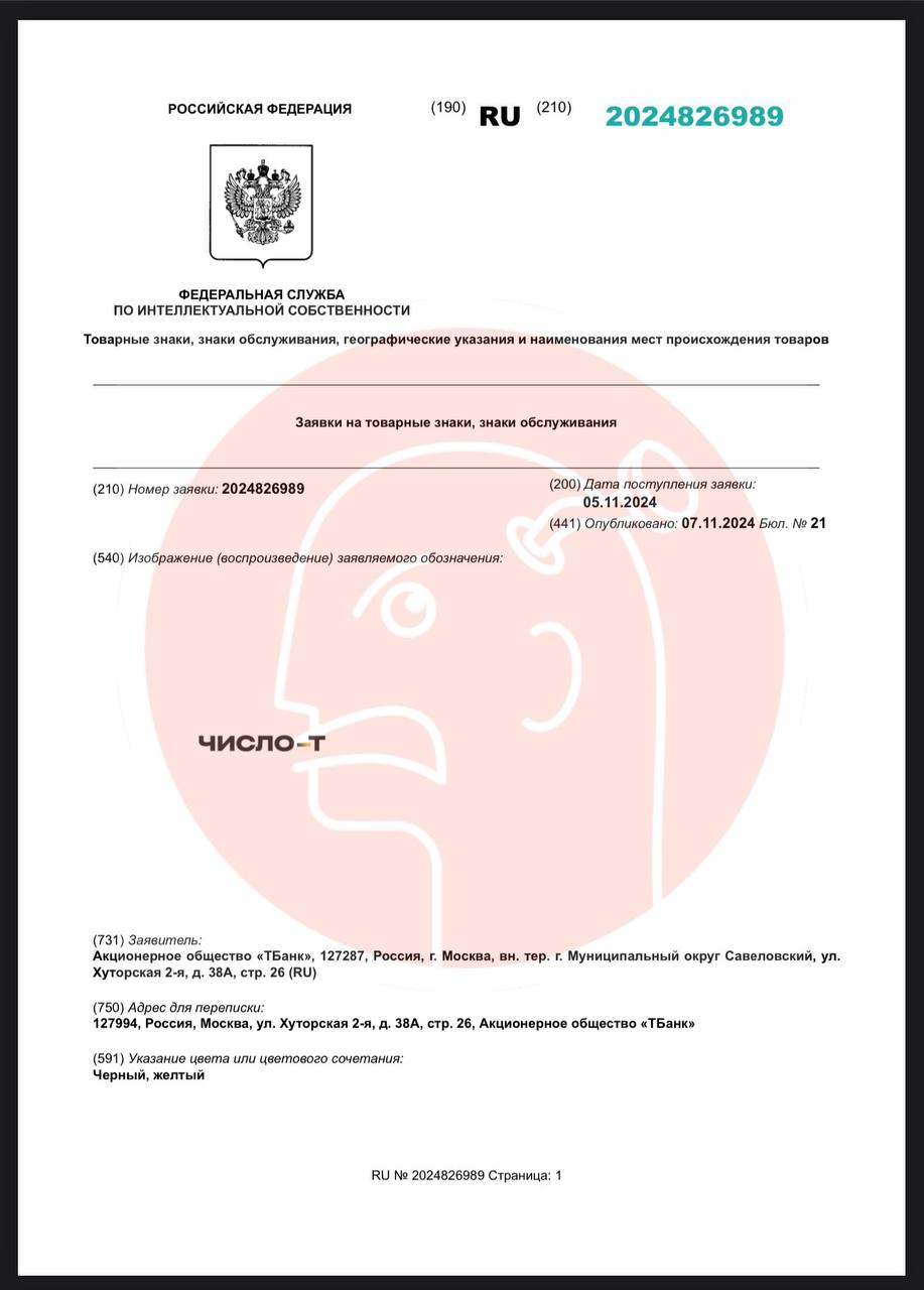🤔Глядите как интересно! Т-банк конкурирует за товарный знак «Число Т» со своей дочкой.