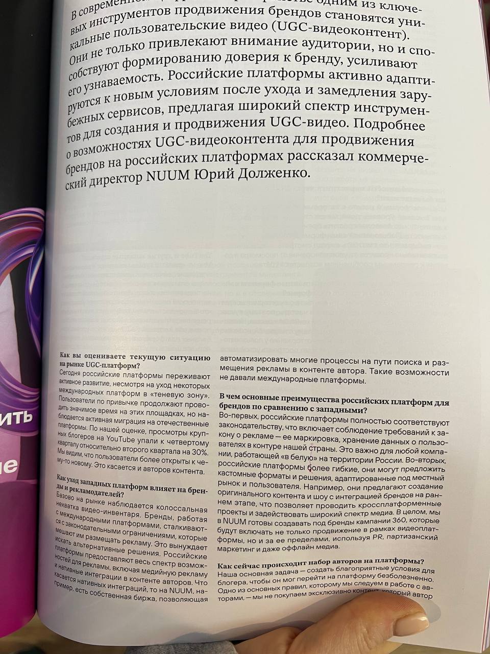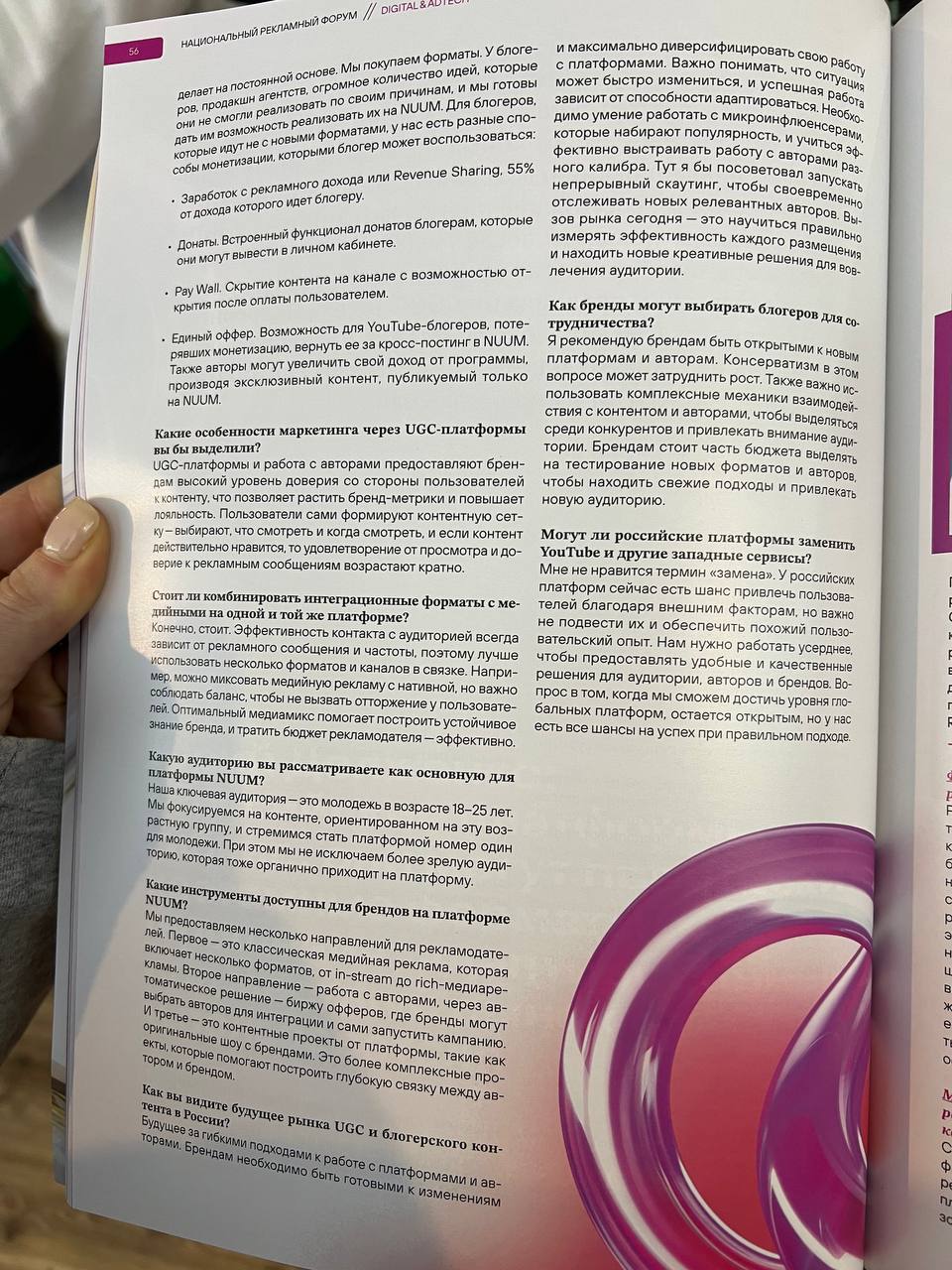 🤓 На НРФ еще раздают журнал, в котором целая масса интервью, но в связи с бесконечными обсуждениями вокруг видеоплатформ, отметил для себя интервью Юрия Долженко, коммерческого директора NUUM.