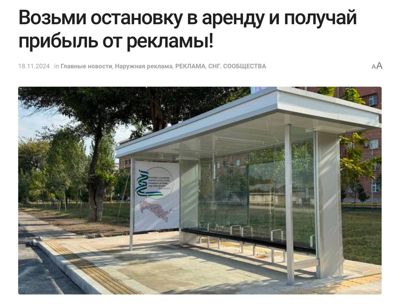 Городской хокимият через открытые торги сдаёт автобусные остановки в узбекской столице в аренду бизнесменам. Предприниматели, вложившись в их обустройство, смогут получить прибыль с рекламы на них. Сейчас проходит аукцион первого этапа, на котором стоимость аренды остановочного комплекса превышает 16 млн сумов (по сегодняшнему курсу 1 сум равен 0,0078 российского рубля).