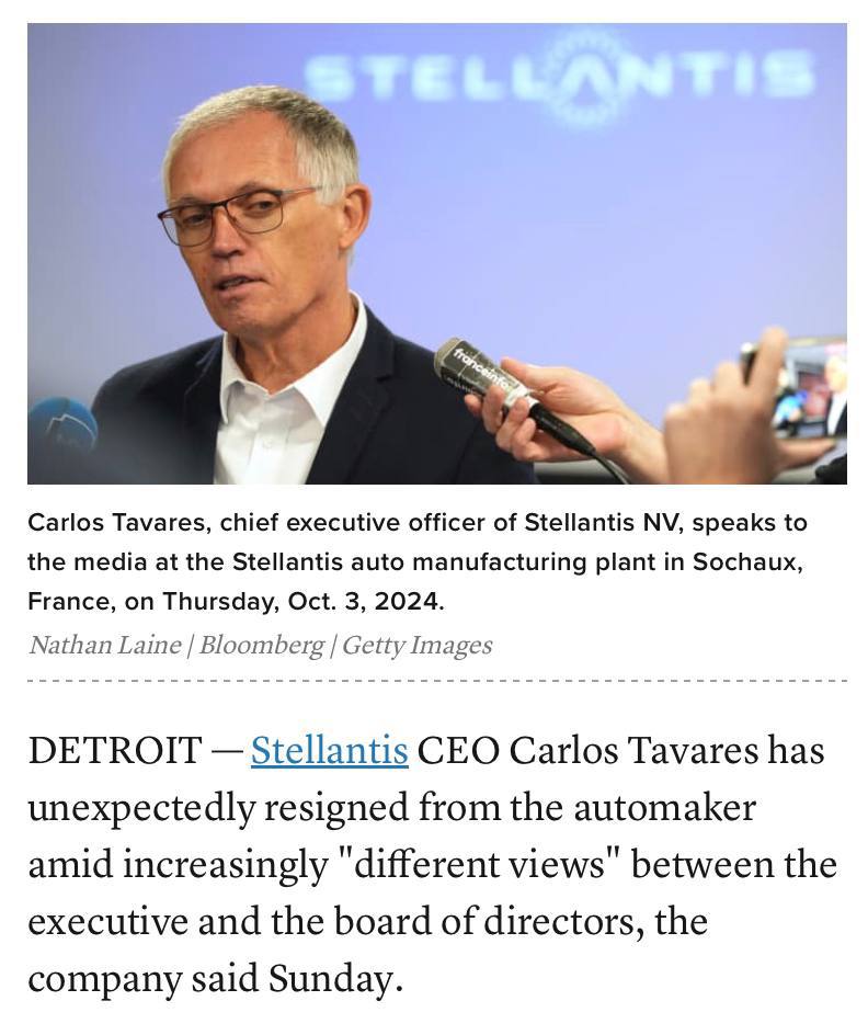 π€ ΠΠ΅Π½Π΅ΡΠ°Π»ΡΠ½ΡΠΉ Π΄ΠΈΡΠ΅ΠΊΡΠΎΡ ΠΎΠ΄Π½ΠΎΠ³ΠΎ ΠΈΠ· ΠΊΡΡΠΏΠ½Π΅ΠΉΡΠΈΡ Π² ΠΌΠΈΡΠ΅ Π°Π²ΡΠΎΠΏΡΠΎΠΈΠ·Π²ΠΎΠ΄ΠΈΡΠ΅Π»Π΅ΠΉ Stellantis ΠΠ°ΡΠ»ΠΎΡ Π’Π°Π²Π°ΡΠ΅Ρ ΡΠ²ΠΎΠ»ΠΈΠ»ΡΡ Π½Π° ΡΠΎΠ½Π΅ ΠΏΡΠΎΠ±Π»Π΅ΠΌ Π² Π‘Π¨Π ΠΈ ΠΏΠ°Π΄Π΅Π½ΠΈΡ ΠΏΡΠΎΠ΄Π°ΠΆ.