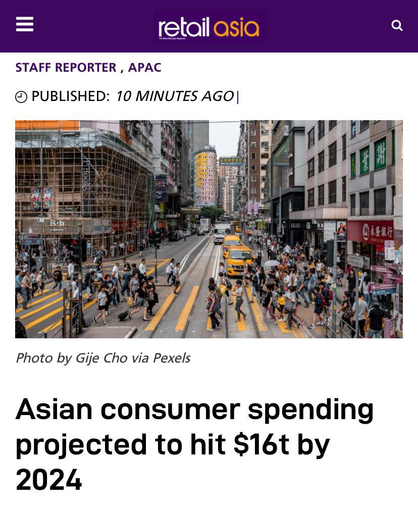В 2024 году потребительские расходы в Азии достигнут 16 триллионов долларов, что составит всего 27% мирового рынка.