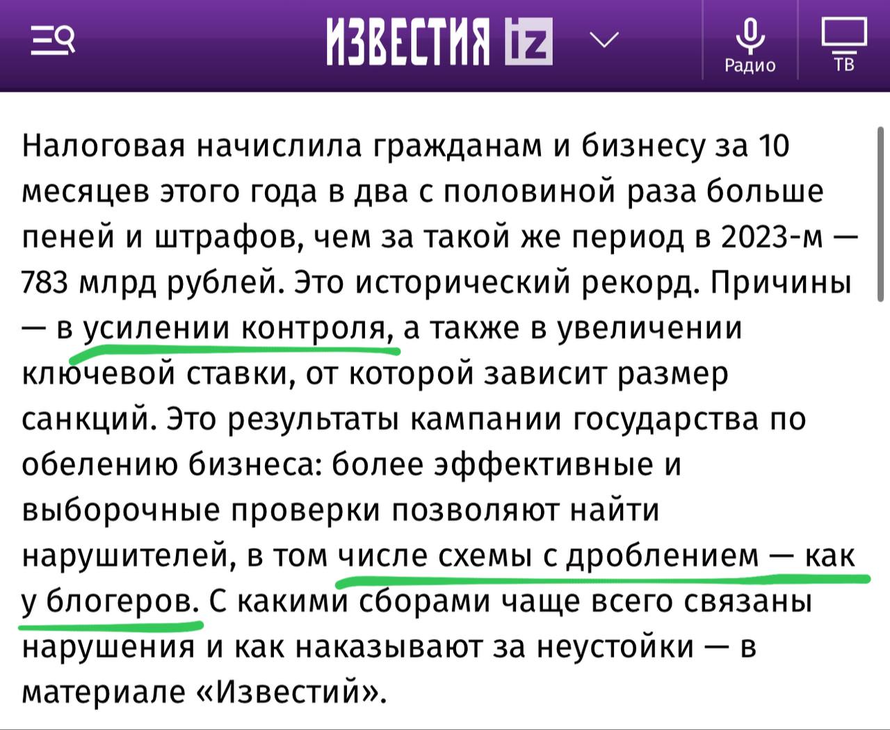 Причина: усиление контроля и пристальное внимание к схемам с дроблением ИП, «как у блогеров».