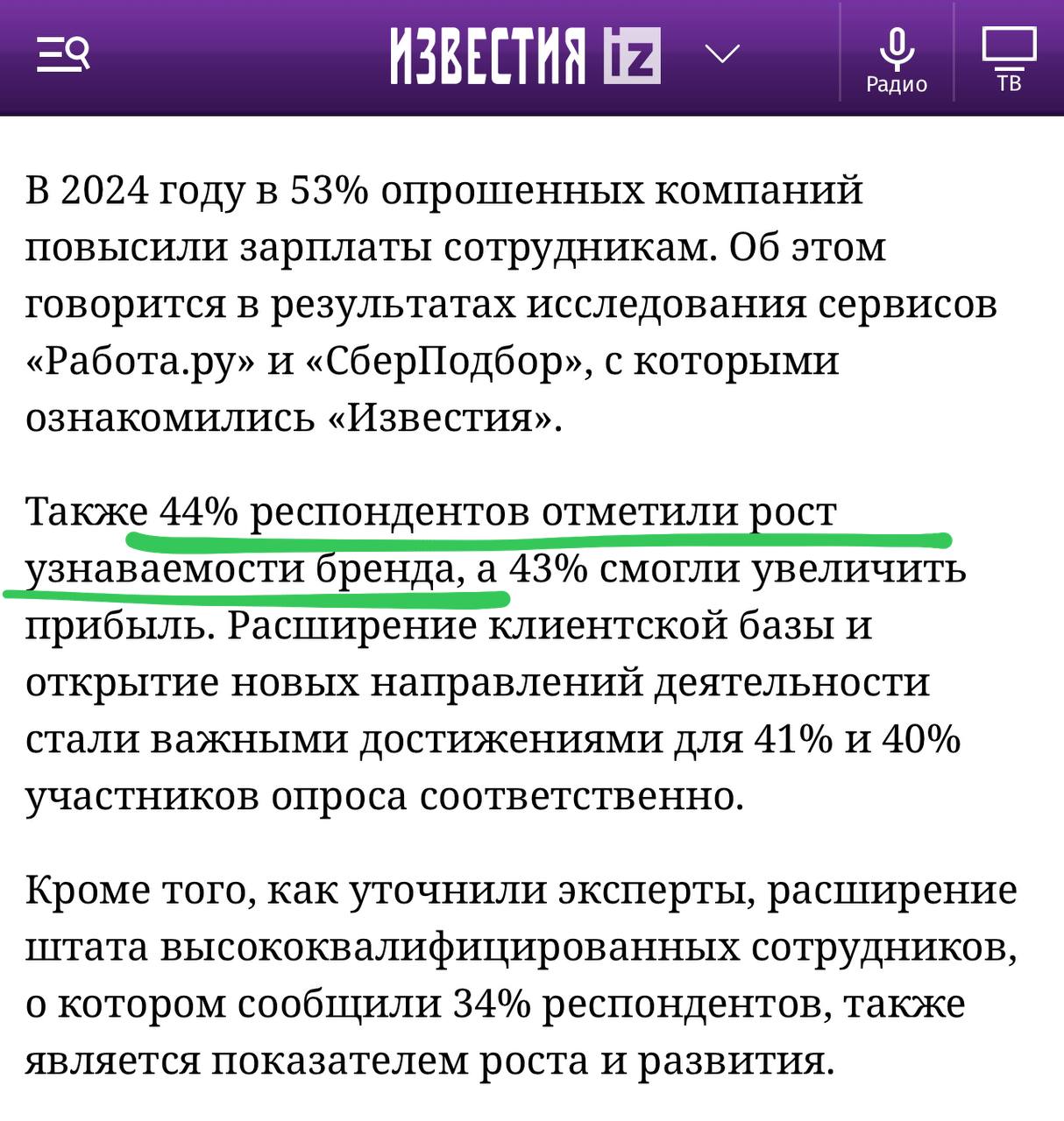 😂 44% опрошенных респондентов по теме HR заметили «рост узнаваемости бренда». Какой неожиданный субъективный показатель!