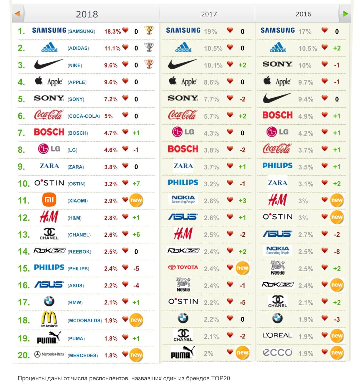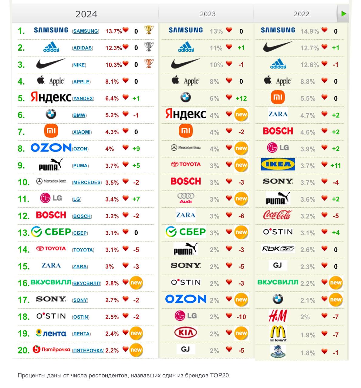 🤔 Любимые бренды россиян за 9 лет по данным OMI.