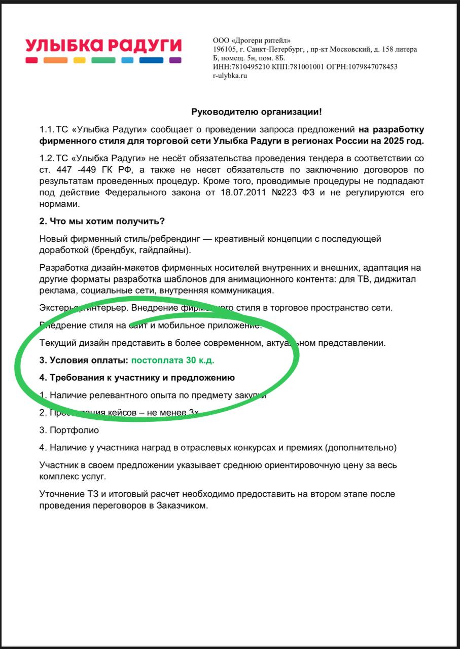Забавно также то, что текущий стиль и цвет в ТЗ на ребрендинг лежит в списке примеров «устаревшие, темные, грязные цвета». Да, там еще постоплата 30 дней, что для брендинга — весьма необычно.