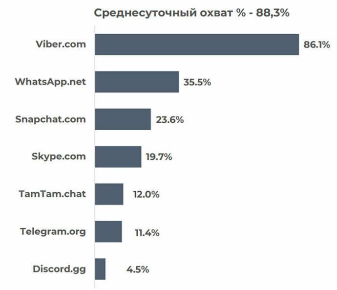 Интересно, что по среднесуточным охватам Telegram занимает предпоследнее место. Однако по среднемесячным охватам поднялся на 2-ю позицию.