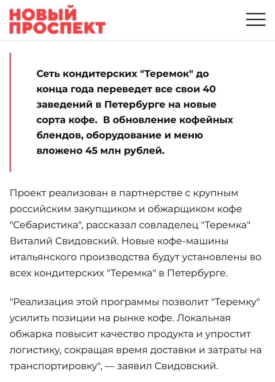 🤓 Питерский Теремок решил догонять уходящий кофейный поезд и теперь будет торговать только «хорошим кофе». Что будет делать столичный Теремок — в статье не сказано.