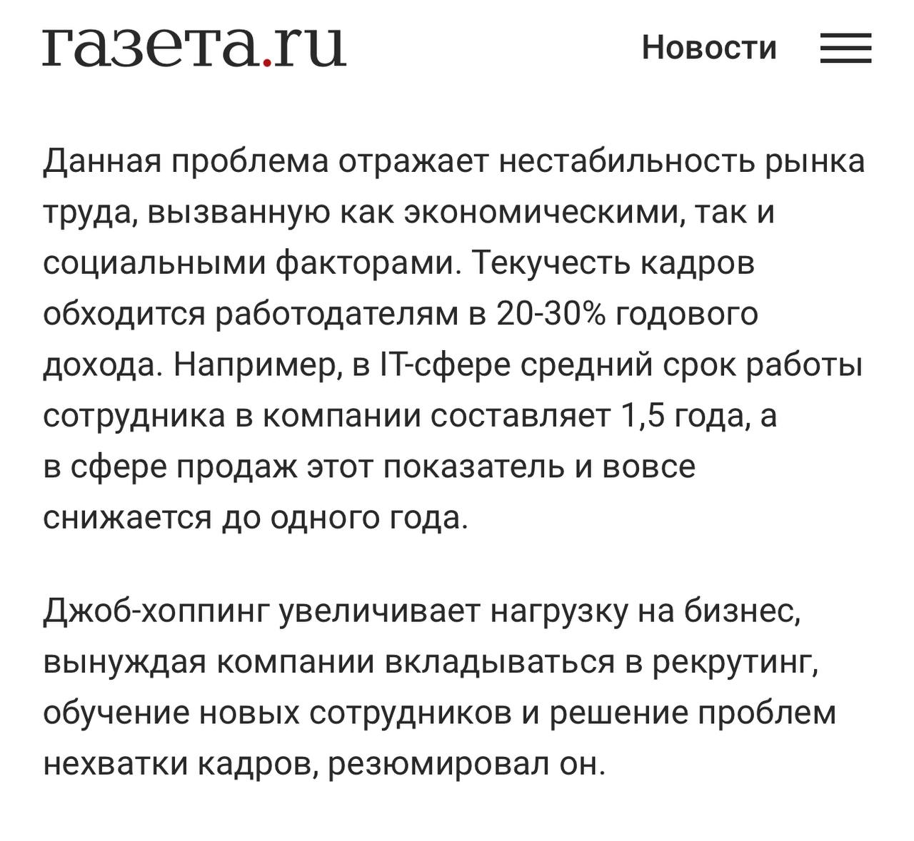 🤔 У бизнеса случился «джоб-хоппинг», о чем пишет центральная пресса.