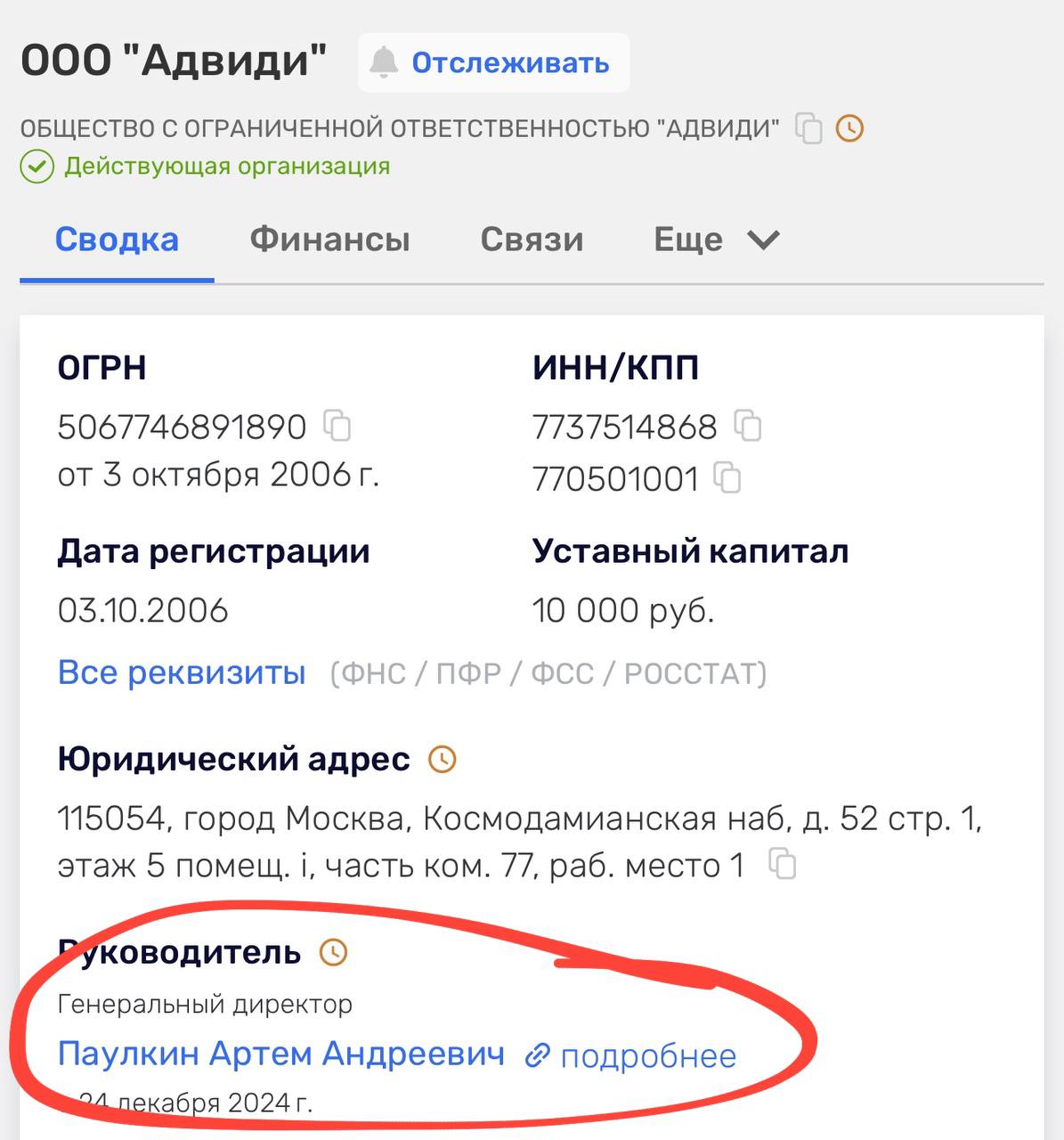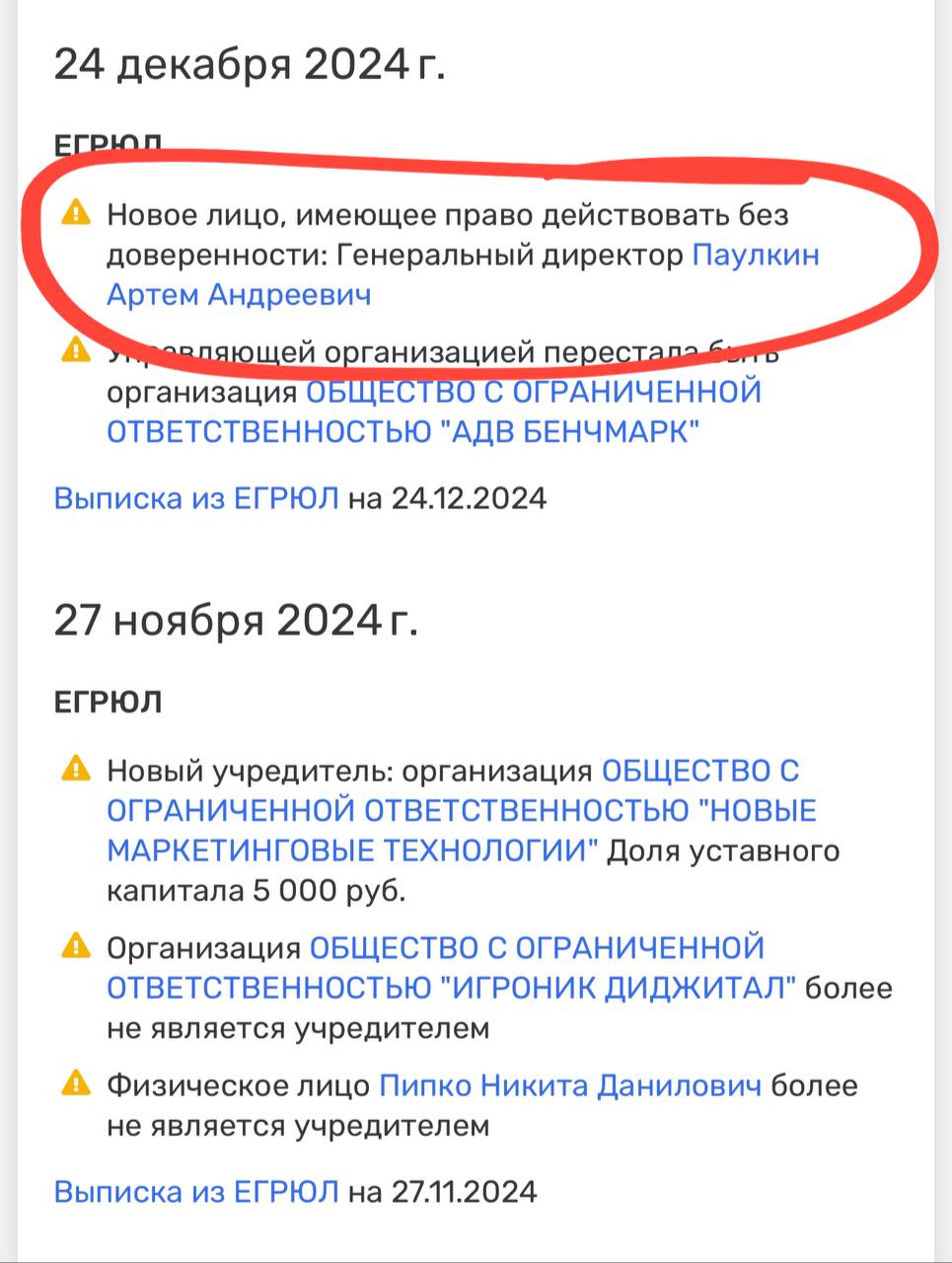 🤔 ООО «Адвиди», бывшее одним из совместных юрлиц распавшегося альянса Игроник-АДВ, назначило нового гендира.