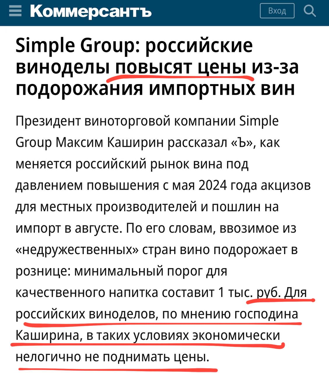 Логика виноторговцев (а вообще всех) такова, что ценообразование прицеплено к конкурентной среде. Если ты работать в сегменте среднедорогих импортных аналогов — ты в нем и остаешься, поднимая цены до уровня дорожающего категоричного бенчмарка. Иначе — зачем это все?