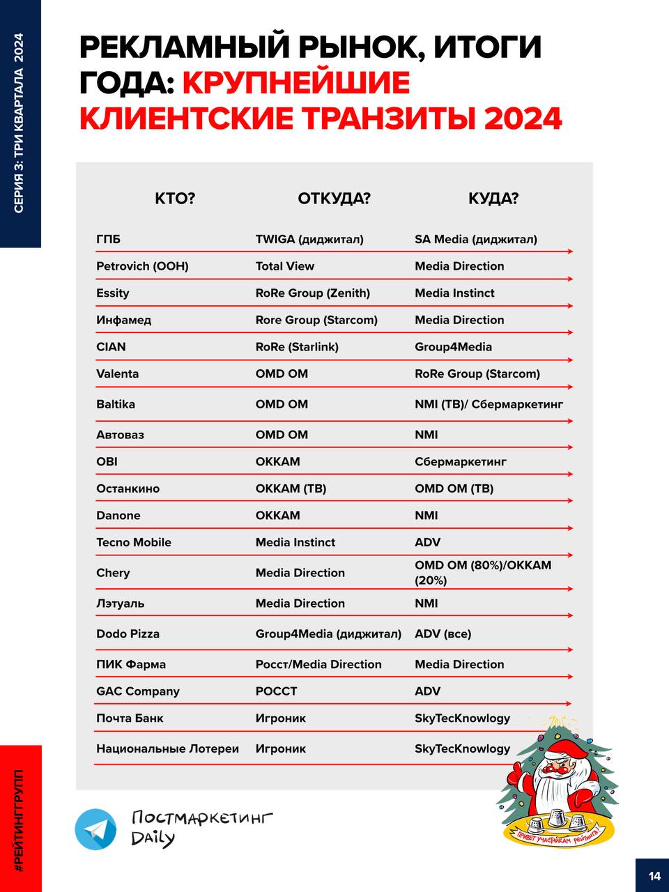 Между тем, на 2025 год уже зреет несколько очень громких смен агентств, которым рынок сильно удивится.