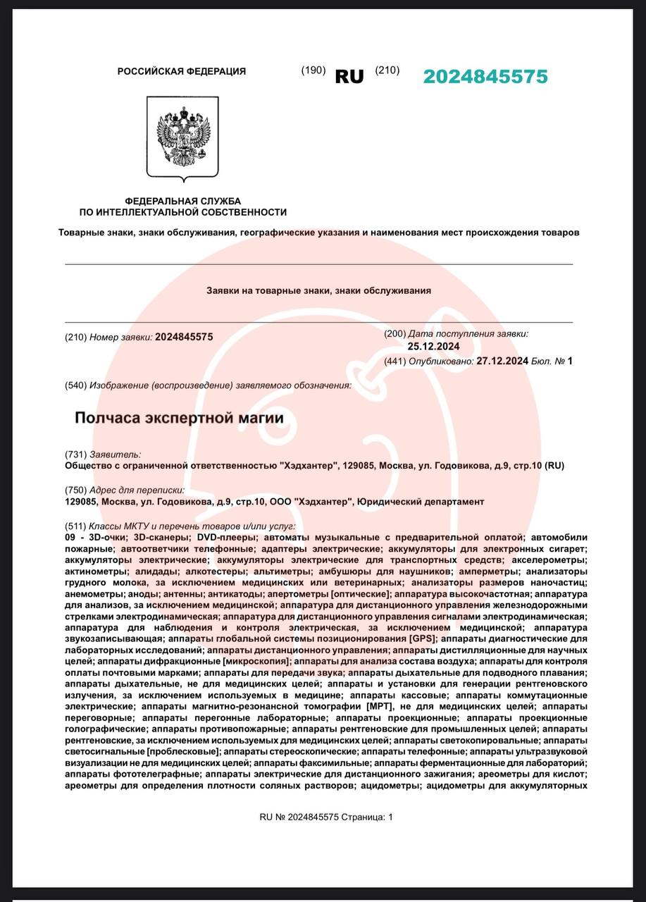 Вот, буквально на днях крупнейший портал про работу подал заявку на регистрацию товарного знака «Полчаса экспертной магии».