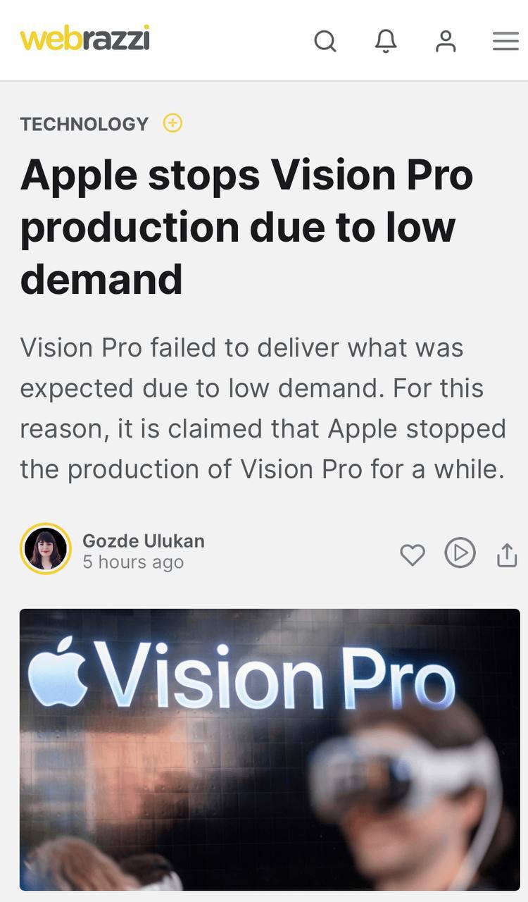π΅ Apple ΡΠ΅ΡΠΈΠ»Π° ΠΏΡΠ΅ΠΊΡΠ°ΡΠΈΡΡ ΠΏΡΠΎΠΈΠ·Π²ΠΎΠ΄ΡΡΠ²ΠΎ Vision Pro ΠΈΠ·-Π·Π° Π½ΠΈΠ·ΠΊΠΎΠ³ΠΎ ΡΠΏΡΠΎΡΠ° Π½Π° ΠΏΡΠΎΠ΄ΡΠΊΡ.