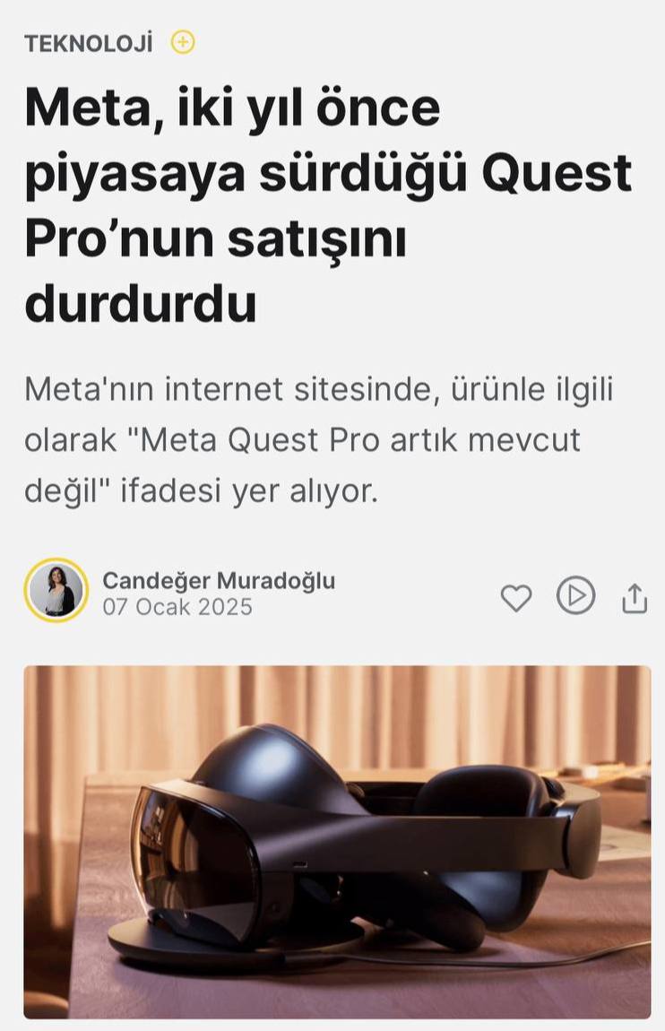 Meta прекратила продажу Quest Pro (гарнитура в виртуальной реальности), выпущенного два года назад из-за высокой цены и низкого интереса у потребителей.