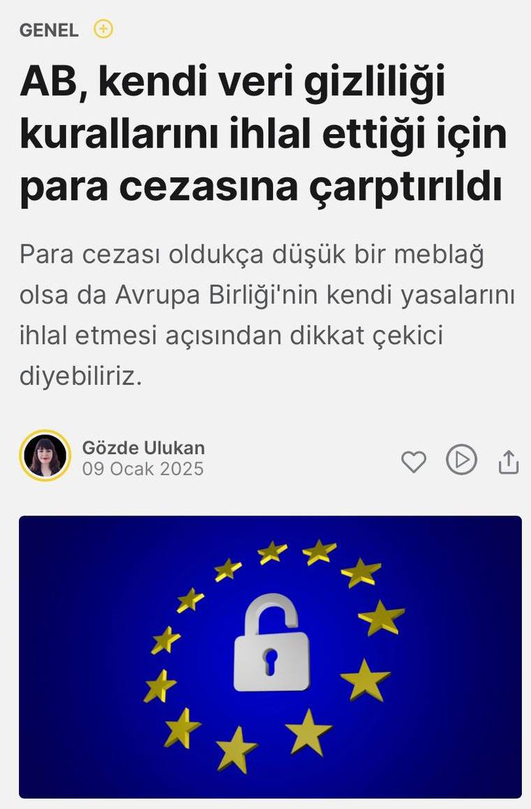 🤓 Парадокс. Впервые в своей истории ЕС был оштрафован за нарушение собственных законов о конфиденциальности данных.