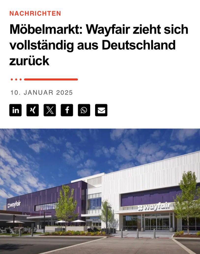 🤔 Американский интернет-магазин мебели Wayfair уходит с рынка Германии и Австрии через 15 лет, объявив о сокращении 730 рабочих мест.