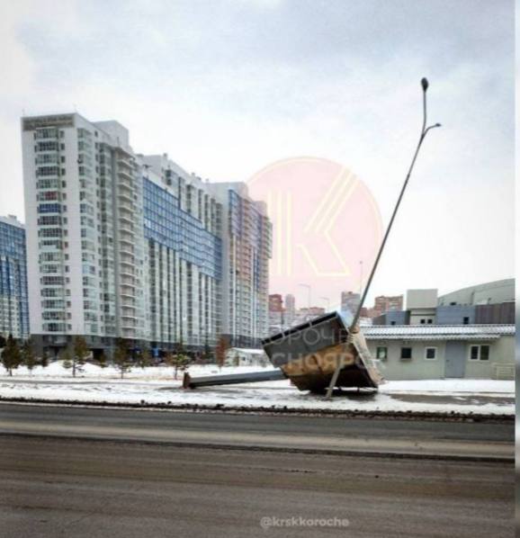 🤓 В Красноярске узнали, что упавший щит установлен незаконно. Не привлекал бы к себе внимание — стоял бы дальше.
