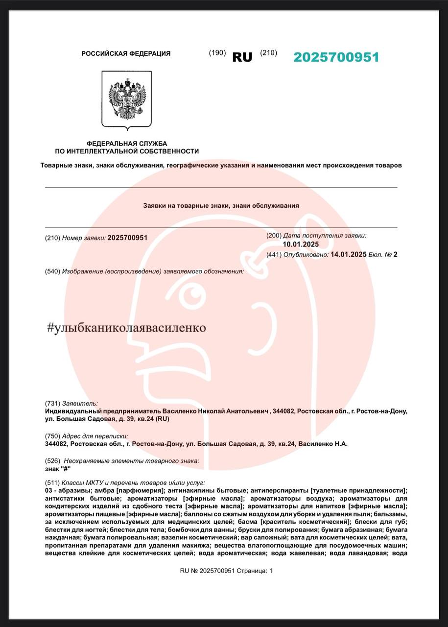 😂 Доброе утро. Николай Василенко патентует свою улыбку, вернее — тег с ее упоминанием.