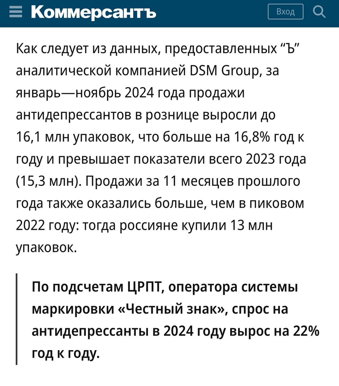 π€ Π ΠΎΡΡ ΠΏΡΠΎΠ΄Π°ΠΆ Π°Π½ΡΠΈΠ΄Π΅ΠΏΡΠ΅ΡΡΠ°Π½ΡΠΎΠ² Π½Π° 22% Π³ΠΎΠ΄ ΠΊ Π³ΠΎΠ΄Ρ. Π’ΠΎΠΆΠ΅, ΡΠ²ΠΎΠ΅Π³ΠΎ ΡΠΎΠ΄Π°, ΠΏΠΎΡΡΠ΅Π±ΠΈΡΠ΅Π»ΡΡΠΊΠΈΠΉ ΠΎΠΏΡΠΈΠΌΠΈΠ·ΠΌ Π² ΠΎΡΠ΄Π΅Π»ΡΠ½ΠΎ Π²Π·ΡΡΠΎΠΉ ΠΊΠ°ΡΠ΅Π³ΠΎΡΠΈΠΈβ¦