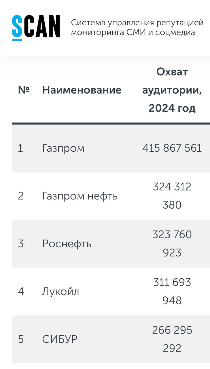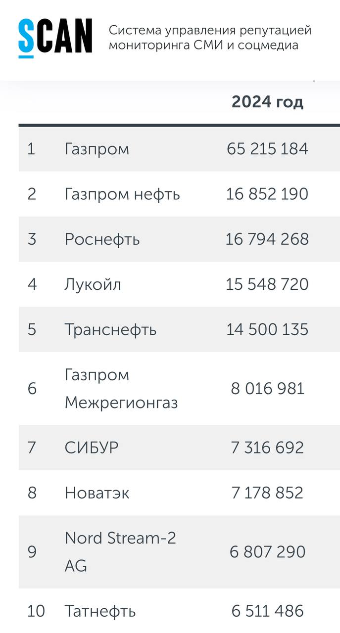 «ΠΠ°Π·ΠΏΡΠΎΠΌ» Π±ΡΡΡ Π²ΡΠ΅ ΡΠ΅ΠΊΠΎΡΠ΄Ρ, ΠΎΡΡΡΠ²Π°ΡΡΡ ΠΏΠΎ ΠΊΠΎΠ»ΠΈΡΠ΅ΡΡΠ²Ρ ΡΠΏΠΎΠΌΠΈΠ½Π°Π½ΠΈΠΉ ΠΎΡ Π±Π»ΠΈΠΆΠ°ΠΉΡΠ΅Π³ΠΎ ΠΊΠΎΠ½ΠΊΡΡΠ΅Π½ΡΠ° Π² Π½Π΅ΡΠΊΠΎΠ»ΡΠΊΠΎ ΡΠ°Π·. ΠΠΎΡΠΊΠ° ΠΆΠ΅ ΡΡΡΡ ΡΠΊΡΠΎΠΌΠ½Π΅Π΅, Π½ΠΎ ΡΠ°ΠΊΠΆΠ΅ – Π² Π»ΠΈΠ΄Π΅ΡΠ°Ρ . ΠΠΎ ΠΈΡΠΎΠ³Π°ΠΌ 2024 Π³ΠΎΠ΄Π° Π½Π΅ΡΡΡΠ½Π°Ρ ΠΊΠΎΠΌΠΏΠ°Π½ΠΈΡ Π²ΡΠΎΡΠΎΠΉ Π³ΠΎΠ΄ ΠΏΠΎΠ΄ΡΡΠ΄ Π·Π°Π½ΠΈΠΌΠ°Π΅Ρ Π²ΡΠΎΡΡΡ ΡΡΡΠΎΡΠΊΡ ΡΠ΅ΠΉΡΠΈΠ½Π³Π° ΠΏΠΎ ΠΏΠΎΠΊΠ°Π·Π°ΡΠ΅Π»Ρ ΠΈΠ½Π΄Π΅ΠΊΡΠ° Π·Π°ΠΌΠ΅ΡΠ½ΠΎΡΡΠΈ ΠΈ ΠΎΡ Π²Π°ΡΡ Π°ΡΠ΄ΠΈΡΠΎΡΠΈΠΈ. ΠΡΠ΅Π³ΠΎ Π·Π° Π³ΠΎΠ΄ Π² Π‘ΠΠ «ΠΠ°Π·ΠΏΡΠΎΠΌ Π½Π΅ΡΡΡ» ΡΠΏΠΎΠΌΡΠ½ΡΠ»ΠΈ Π±ΠΎΠ»ΡΡΠ΅ 121 ΡΡΡ. ΡΠ°Π·.