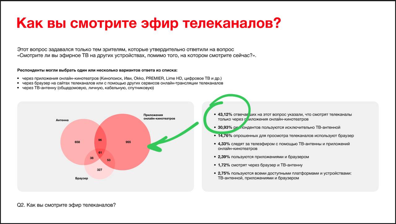 🤓 Любопытный прикол в опросе от АРИР. Уже 43% опрошенных смотрят ТВ только в онлайне. Как мы понимаем, суть в том, что это неплохой посыл к продаже онлайн-инвентаря ТВ-каналов, который нынче продается сильно хуже классического.