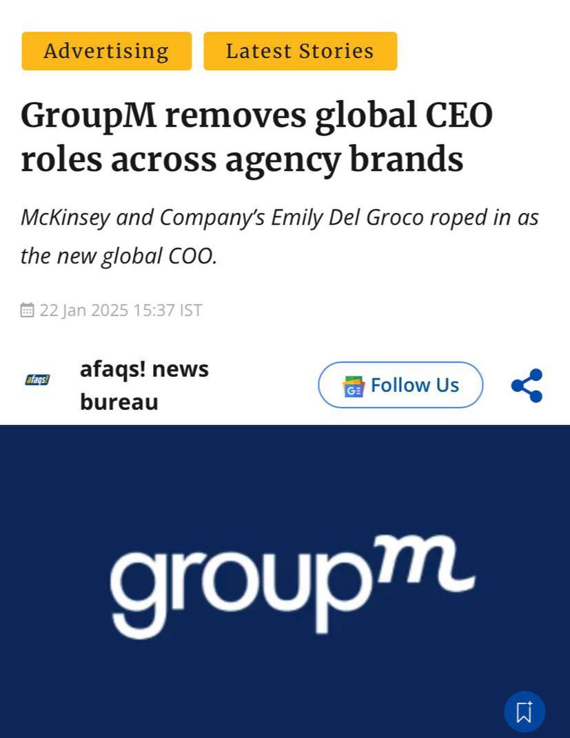 🤔 GroupM пересматривает структуру руководства, для стимулирования глобального роста.