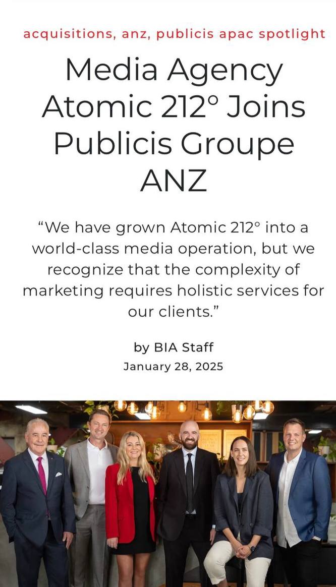 π€ Publicis Groupe ANZ (Π Π΅ΠΊΠ»Π°ΠΌΠ½ΠΎΠ΅ Π°Π³Π΅Π½ΡΡΡΠ²ΠΎ) ΠΎΠ±ΡΡΠ²ΠΈΠ»Π° ΠΎ ΠΏΡΠΈΠΎΠ±ΡΠ΅ΡΠ΅Π½ΠΈΠΈ Π°Π²ΡΡΡΠ°Π»ΠΈΠΉΡΠΊΠΎΠ³ΠΎ ΠΌΠ΅Π΄ΠΈΠ°Π°Π³Π΅Π½ΡΡΡΠ²Π° ΠΏΠΎΠ»Π½ΠΎΠ³ΠΎ ΡΠΈΠΊΠ»Π° Atomic 212Β°