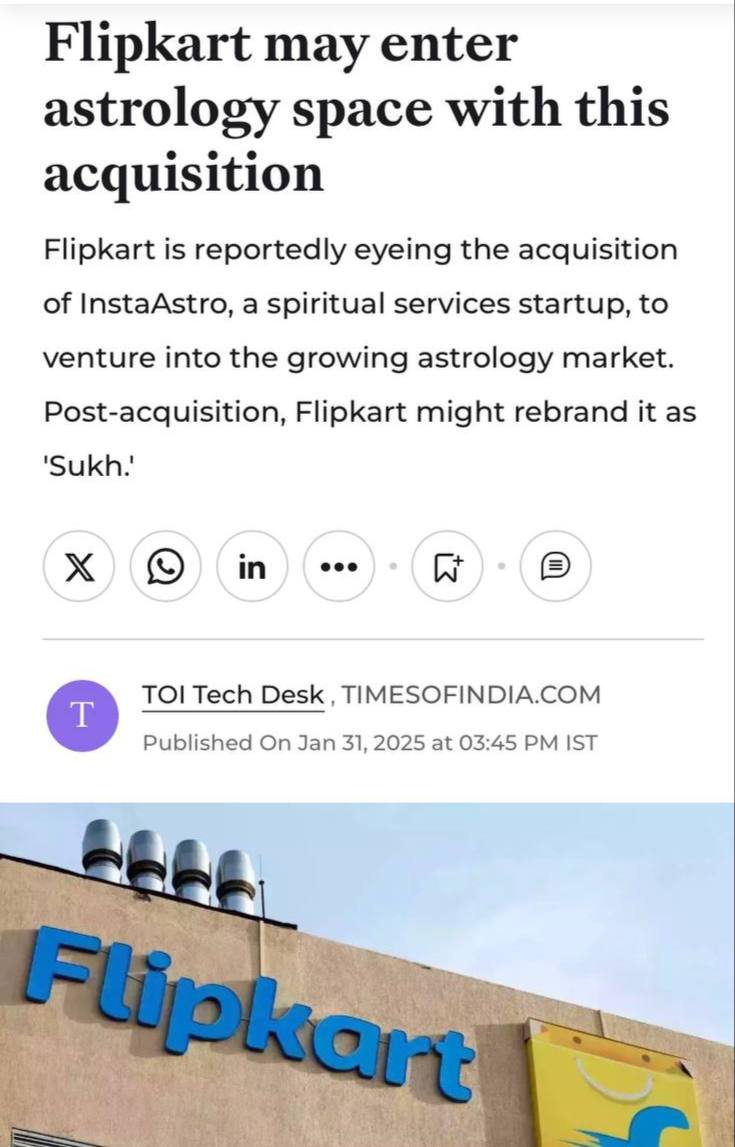 Flipkart ΡΠ°ΡΡΠΌΠ°ΡΡΠΈΠ²Π°Π΅Ρ Π²ΠΎΠ·ΠΌΠΎΠΆΠ½ΠΎΡΡΡ ΠΏΡΠΈΠΎΠ±ΡΠ΅ΡΠ΅Π½ΠΈΡ InstaAstro, ΡΡΠ°ΡΡΠ°ΠΏΠ° Π² ΡΡΠ΅ΡΠ΅ Π΄ΡΡ ΠΎΠ²Π½ΡΡ ΡΡΠ»ΡΠ³, ΡΡΠΎΠ±Ρ Π²ΡΠΉΡΠΈ Π½Π° ΡΠ°ΡΡΡΡΠΈΠΉ ΡΡΠ½ΠΎΠΊ Π°ΡΡΡΠΎΠ»ΠΎΠ³ΠΈΠΈ. ΠΠΎΡΠ»Π΅ ΠΏΡΠΈΠΎΠ±ΡΠ΅ΡΠ΅Π½ΠΈΡ Flipkart ΠΌΠΎΠΆΠ΅Ρ ΠΏΠ΅ΡΠ΅ΠΈΠΌΠ΅Π½ΠΎΠ²Π°ΡΡ Π΅Π³ΠΎ Π² «Sukh».