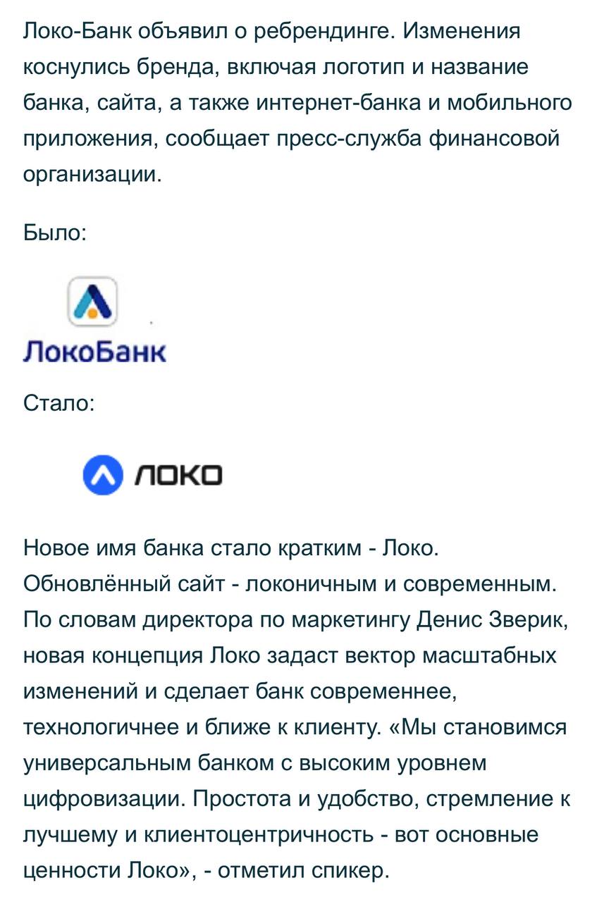 🤓Локо банк заявил о собственном ребрендинге, спустя 4 месяца после того того, как о его ребрендинге объявили мы. Молодцы.